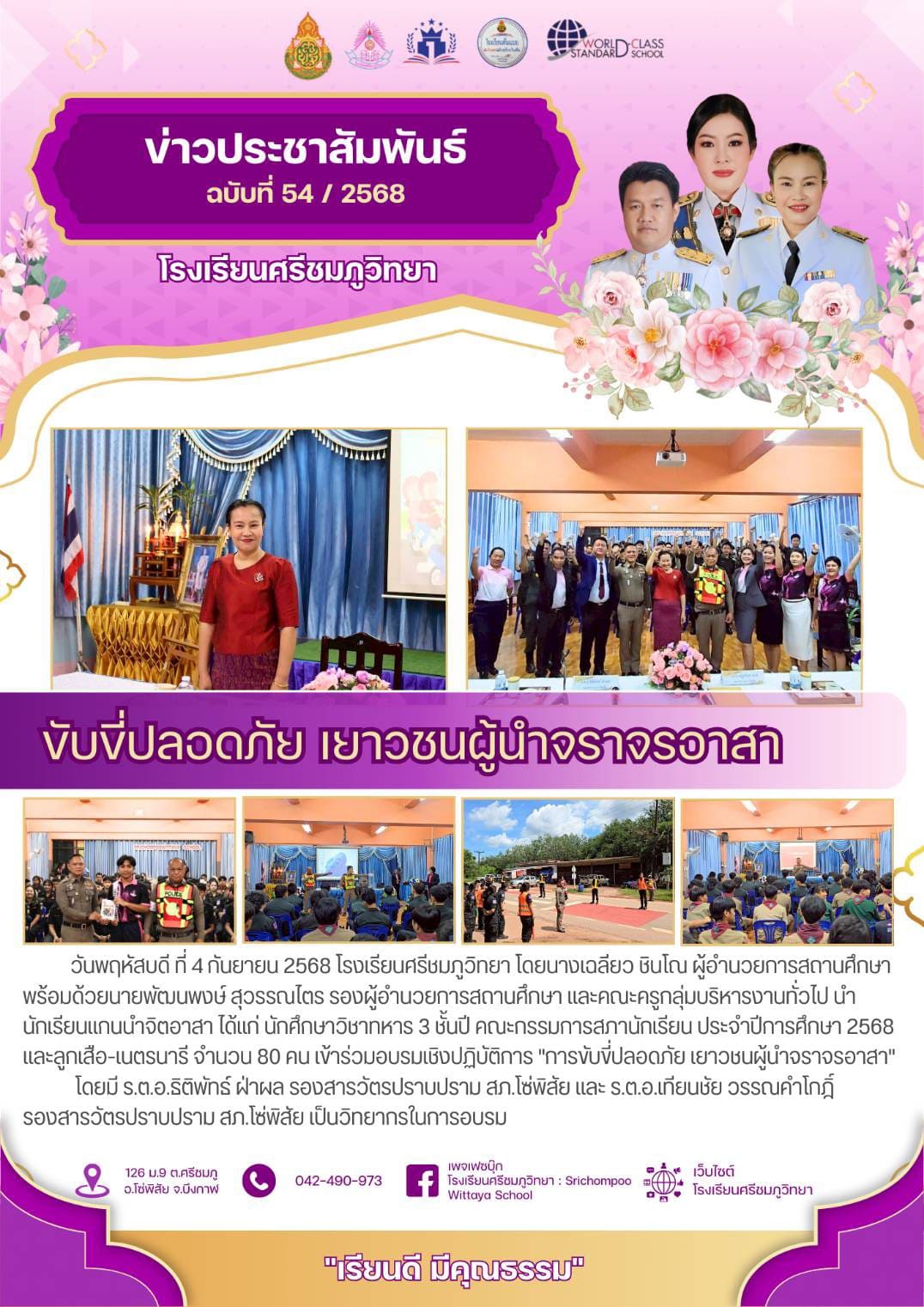 วันพฤหัสบดี ที่ 4 กันยายน 2568 โรงเรียนศรีชมภูวิทยา โดยนางเฉลียว ชินโณ ผู้อำนวยการสถานศึกษา